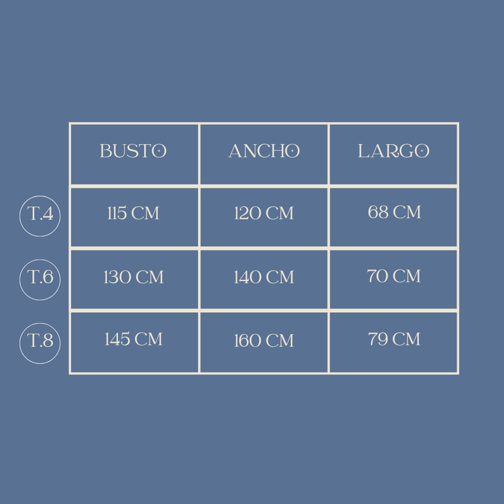 Disponible en talles 4, 6 y 8, esta camiseta es super amplia, lo que asegura comodidad y libertad de movimiento durante todo el día.